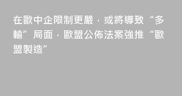 歐盟委員會4日正式公佈了醞釀已久的《工業加速器法案》(IAA),這部旨在提升歐盟製造業競爭力的法案被認爲極具針對中國的意味,且表現出濃厚的保護主義色彩。對此,歐盟中國商會4日發表立場聲明稱,雖然理解歐盟提升競爭力、推動綠色轉型和確保經濟安全的戰略目標,但對該法案中相關條款可能對市場開放、......
