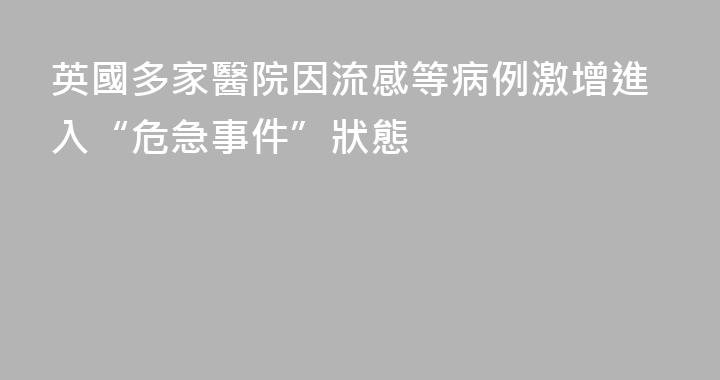 新華社倫敦1月12日電(記者郭爽)由於近期冬季流感和諾如病毒感染病例激增,英國多家醫院信託機構12日宣佈進入“危急事件”狀態,以應對醫療救治服務持續承壓的局面。當天,倫敦附近薩裏郡有3家醫院信託機構因服務“持續承受嚴重壓力”而啓動“危急事件”應急響應。近期,低溫天氣導致更多體弱患者需入院治療......