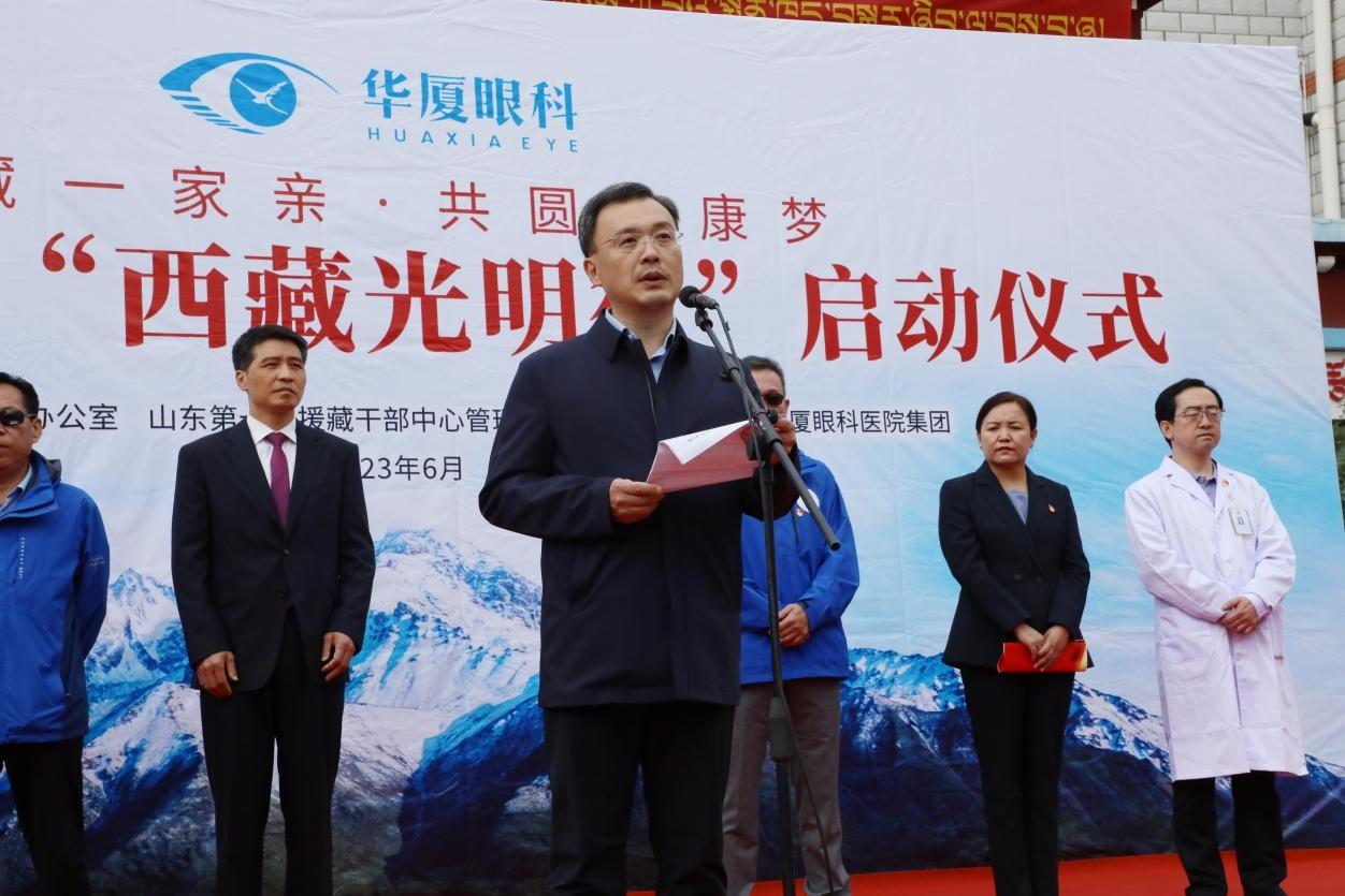 6月14日上午,2023華廈眼科“西藏光明行”大型援藏公益活動啓動儀式在“珠峯之鄉”西藏日喀則市隆重舉行。山東省第十批援藏幹部領隊、日喀則市委副書記、市政府常務副市長陳耕,山東廣播電視臺黨委委員、《共產黨員》編輯部主任高翔,山東省對口支援辦公室一級調研員王慶慧,日喀則市衛生健康委主任巴桑片多,日喀則市教育局黨組成員、副局長次仁扎西,華廈眼科醫院集團黨委書記、副總裁、廈門大學附屬廈門眼科中心執行院長李曉峯,中國醫師協會斜視與小兒眼病專委會副主委、華廈眼科醫院集團山東區總院長、“西藏光明行”領隊王利華出席啓動儀式。