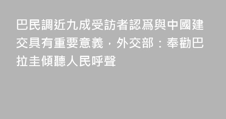 巴拉圭媒體《5天》日前援引該國一份最新民調稱,有58.3%的巴拉圭受訪者認爲與中國建立外交關係“非常重要”,29.8%的人認爲“較爲重要”,總佔比近90%。報道稱,該民調旨在瞭解巴拉圭民衆對中國及與中國建立外交關係可能性的看法,覆蓋巴全國各地,涉及1200份面對面及電話訪談。“近九成受訪者認......
