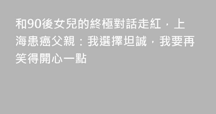 如果生命只剩下3—6個月,你會怎麼度過?一位“90後”上海女孩“董三白”和她身患胰腺癌晚期的“50後”父親,用一段平靜的對話視頻,給出了他們的答案。“一個生命要消亡,這是很自然的事”“不要爲改變不了的事情過於悲痛”“你當我去旅行了”。這段名爲《當胰腺癌的老爸,希望我對死亡“脫敏”》的記錄,......