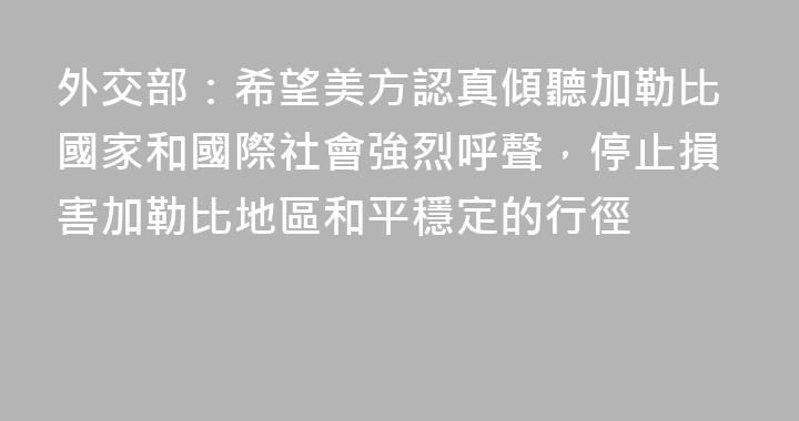 在10月28日外交部例行記者會上,有記者提問稱,近日,牙買加前總理帕特森、圭亞那前總統拉莫塔等10位加勒比共同體成員國前領導人發表聯合聲明,對有關國家在加勒比海域軍事行動深表憂慮,重申加勒比地區50多年來的和平區地位,指出美國應在法治框架下打擊販毒,不能爲法外處決開綠燈。此前,聯合國人權特別機......