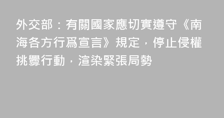 外交部發言人郭嘉昆主持10月27日例行記者會。會上有外媒記者提問稱:菲律賓總統馬科斯在東盟峯會等會議上表示,他對南海持續發生的危險演習等事件感到遺憾,這些活動威脅到了菲律賓人員、船隻和飛機。中方對此有何評論?郭嘉昆對此表示,南海是中國和東盟國家的共同家園,南海和平穩定需要我們共同維護。菲方......