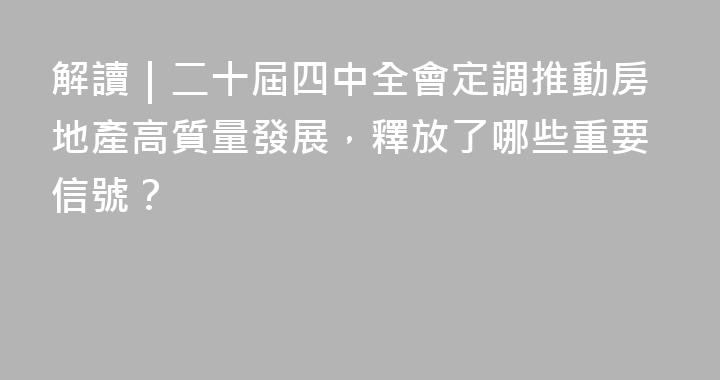 每經記者|陳利每經編輯|陳夢妤10月23日,黨的二十屆四中全會公報發佈,明確提出要“推動房地產高質量發展”。《每日經濟新聞》記者注意到,此次公報將房地產相關表述置於“加大保障和改善民生力度”部分。10月24日的新聞發佈會上,據國家發改委黨組書記、主任鄭柵潔介紹,《中共中央關於制定國民經濟和社會發......