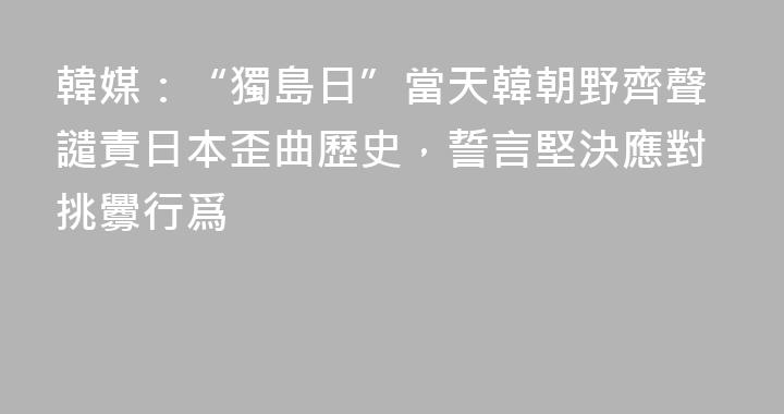 據韓聯社報道,韓國執政黨共同民主黨和在野黨國民力量黨在25日“獨島日”(日本稱“竹島日”)當天一致譴責日本歪曲歷史,並誓言超越黨派界限,採取堅決有力的應對措施。報道稱,共同民主黨首席發言人樸洙賢表示,“無論從歷史上還是從地理上還是從國際法上,獨島(日本稱竹島)都是無可爭辯的我國領土”,“......