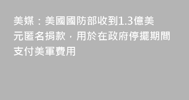 據美聯社報道,當地時間24日,美國國防部確認23日收到了一筆1.3億美元的匿名捐款,用於在政府停擺期間支付美軍費用。五角大樓發言人肖恩·帕內爾稱,捐款是用於服役人員的工資和福利費用。美媒稱,目前尚不清楚聯邦政府在沒有國會參與的情況下,如何合法使用這些資金支付軍隊費用。根據美國憲法規定,國會負責......