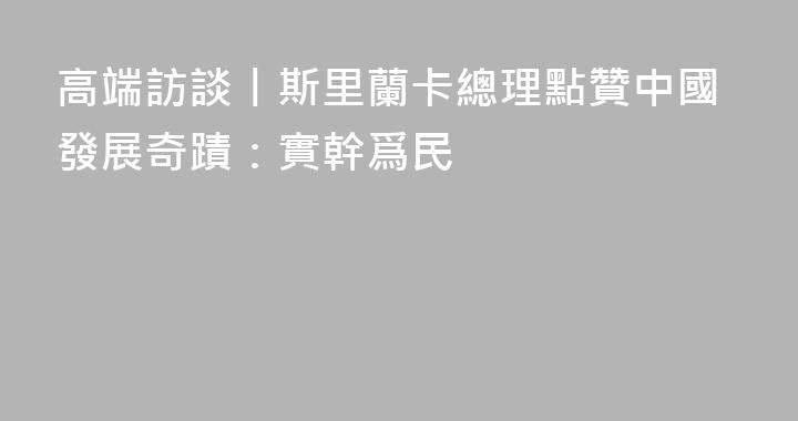 斯里蘭卡總理阿馬拉蘇裏亞日前接受總檯《高端訪談》欄目專訪。她點贊中國發展奇蹟,直言從中國學到“擔當、紀律、爲民”三大啓示,其中“爲民”是核心,人民生活的切實改善就是中國發展奇蹟的最好證明!阿馬拉蘇裏亞表示,“爲民”正是中國歷史、中國的革命歷程所傳遞的核心精神。其根本目標始終是爲人民服務、......