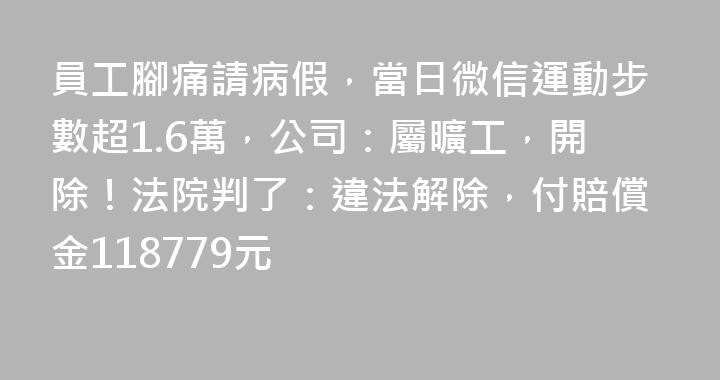 男子因腰痛、腳痛多次請病假公司卻發現其腳痛當天微信運動步數超1.6萬懷疑其“泡病假”以曠工爲由將他開除雙方因此鬧上法庭案件回顧小陳是江蘇某公司的卷簧工。2019年2月22日(週五),他在上班時不慎扭傷腰部。當天工作結束後,他立刻前往醫院進行診治。2月25日(週一)上午,他向公司人事經理申請休假養......