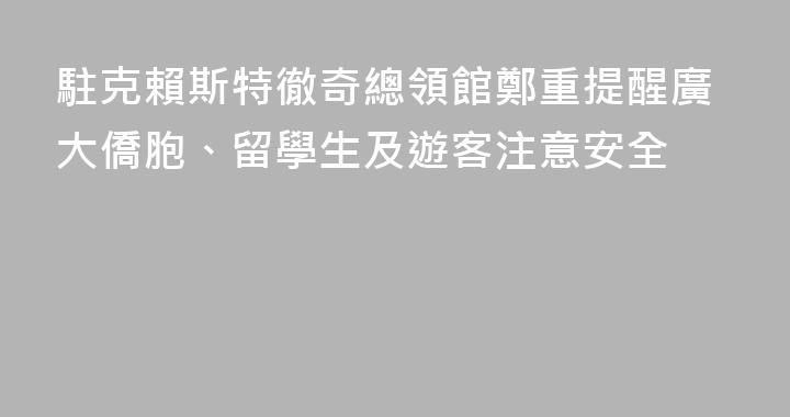 據新西蘭氣象局紅色強風預警、橙色暴雨預警,南島大部分地區將在週四遭遇強風、強降雨,坎特伯雷地區陣風時速或達130公里。中國駐克賴斯特徹奇總領館鄭重提醒廣大僑胞、留學生及在南島旅行的遊客:1.務必重視天氣變化,密切關注新西蘭氣象局MetService和當地民防部門發佈的預警、封路和撤離等信息。2.......