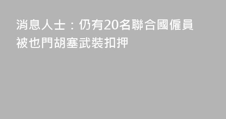新華社科威特城10月20日電(記者尹炣)亞丁消息:聯合國駐也門辦事處一名消息人士20日向新華社記者透露,在也門首都薩那的一處聯合國外籍僱員住宅區仍有20名聯合國僱員被胡塞武裝扣押,其中包括15名外國人和5名也門人。這名不願透露姓名的消息人士稱,胡塞武裝18日突襲了這處聯合國外籍僱員住宅區,19......