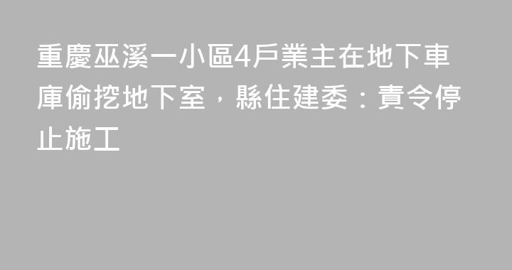 重慶海成雲著小區業主反映,有人在地下車庫偷挖地下室,損壞承重結構。巫溪縣住建委回應,4戶業主私自利用架空層挖地,已責令停止施工。(澎湃新聞記者:謝煜楠素材來源:相關人士)......