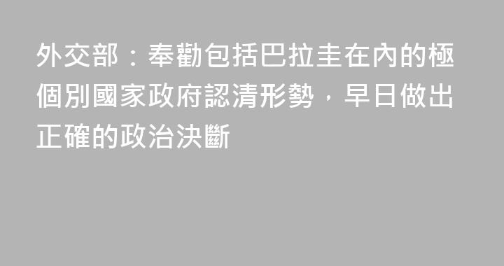 在20日的外交部例行記者會上,有媒體提問稱,據報道,巴拉圭衆議院第一副議長梅薩日前再次公開呼籲,應就巴拉圭與中國可能建立外交與經貿關係展開“嚴肅而廣泛的討論”,強調此議題關係國家長遠利益。中方對此有何評論?對此,中國外交部發言人郭嘉昆表示,一箇中國原則是國際社會的普遍共識和國際關係的基本......