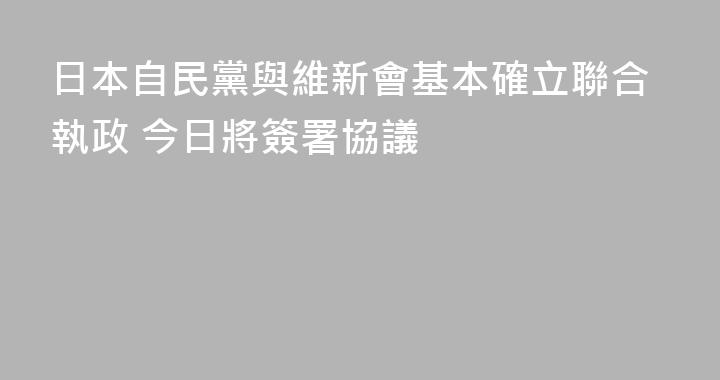 據共同社等日媒20日報道,日本自民黨與日本維新會已就組成執政聯盟達成共識,自民黨黨首高市早苗與日本維新會黨首吉村洋文將於20日晚些時候簽署兩黨協議。與此同時,日本最大在野黨立憲民主黨20日決定將會在首相指名選舉中將票投給該黨黨首野田佳彥。這代表立憲民主黨放棄在本次首相指名選舉中尋求政權交替,高......