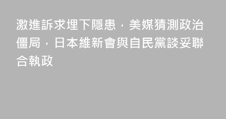據日本《朝日新聞》19日報道,在野黨日本維新會當天在大阪總部召開常任幹事會,會上未出現反對與執政黨自民黨聯合執政的意見。目前兩黨已在政策協商中達成基本共識,計劃於20日簽署相關協議。共同社19日報道稱,維新會加入執政聯盟後,21日的首相指名選舉中將投票給高市早苗,由此高市成爲日本首位女首......