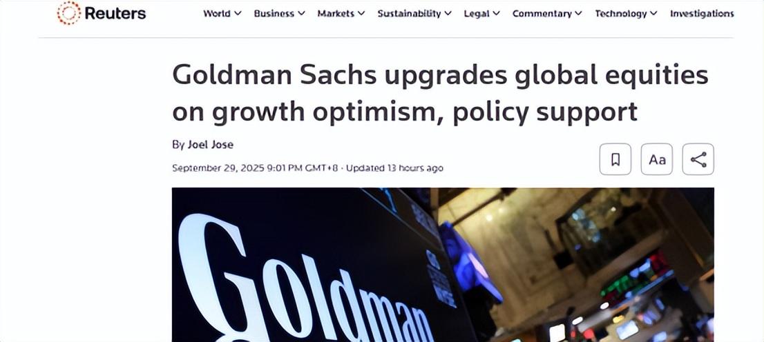 【環球網財經綜合報道】美東時間週一,高盛在未來三個月展望中,將全球股票評級從 “中性” 上調至 “增持”,核心依據包括全球經濟勢頭持續改善、資產估值具備吸引力,以及貨幣政策與財政政策的支持力度不斷增強。
