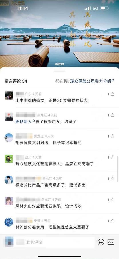 瑞衆保險從《孫子兵法》“風林火山”的古典智慧中提煉現代都市人羣生存哲學,使文創超越器物層面,成爲可感、可用的精神依託,爲保險品牌注入文化厚度與情感溫度,彰顯了品牌建設與中華優秀傳統文化相結合的生動實踐。