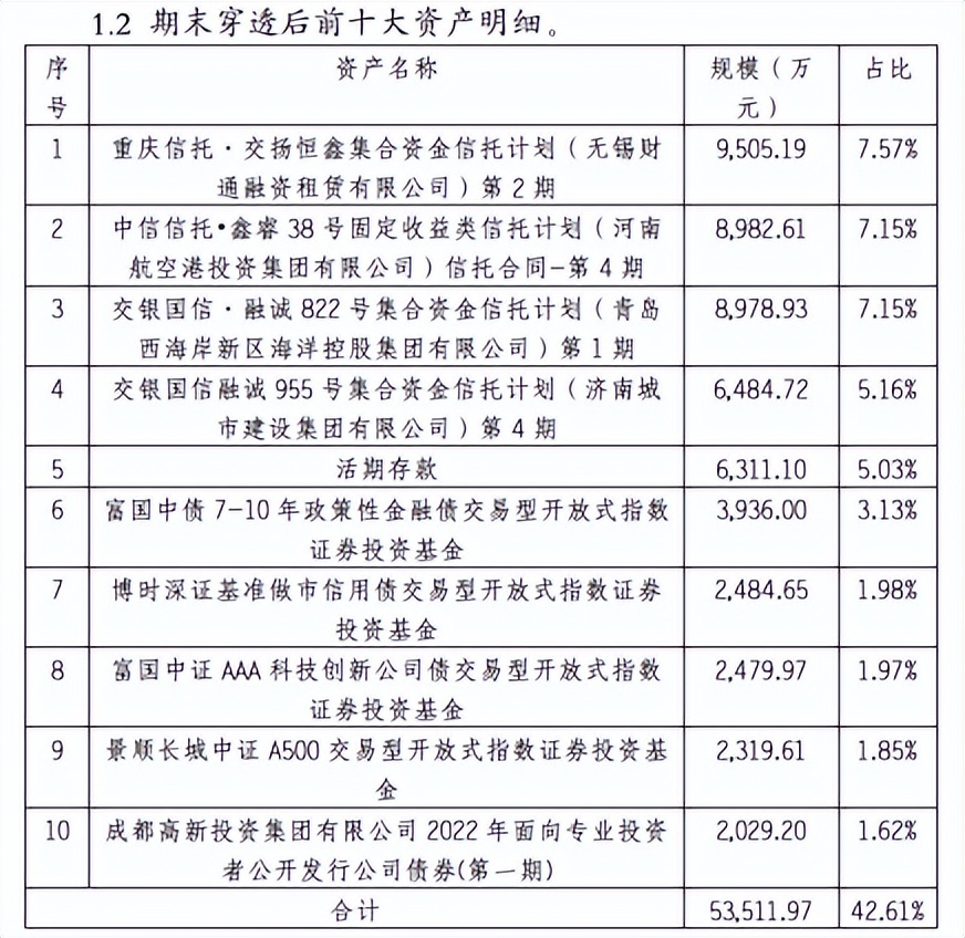 “穩享添福5年封閉式2號養老理財產品”的第三季度報告顯示,其減配債券,增加權益類投資和公募基金,前十大資產明細中,新進“富國中證 AAA 科技創新公司債交易型開放式指數證券投資基金”和“景順長城中證 A500 交易型開放式指數證券投資基金”。