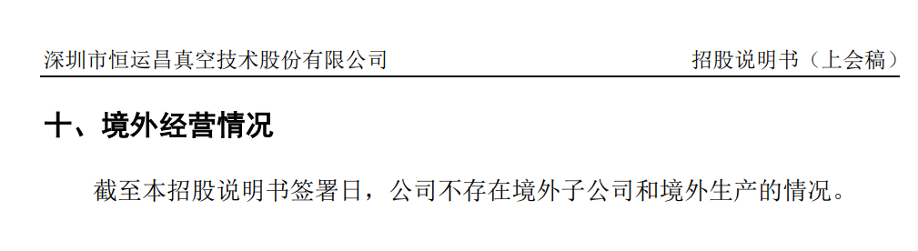 此外,公司“加速國際化進程”的發展規劃與實際經營現狀存在明顯脫節。招股書明確表示將“參與全球資源整合”,但在“境外經營情況”章節卻披露,截至招股書籤署日,公司不存在境外子公司和境外生產情況,也未披露任何海外市場拓展的實質動作。