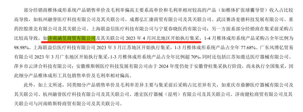 據問詢函回覆顯示,濟南涵昱商貿有限公司及其關聯公司是愛得科技經銷商,2024年向其銷售一次性使用負壓引流護創材料包,金額99.96萬元。但工商信息卻清晰顯示,濟南涵昱商貿有限公司早在2023年3月便已完成註銷登記,註銷後已不具備合法經營主體資格。