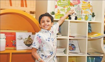 一名當地兒童在2025利雅得國際書展中國圖書展區參觀。