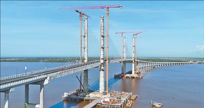 2022年,鐵建國際與圭亞那公共工程部正式簽署施工合同。2023年1月,大橋開工建設。大橋全長2900米,雙向四車道配以非機動車道,設計最高時速80公里。項目經理王志良介紹,新橋使兩岸通行時間縮短3/4,主通航孔可容5萬噸級船舶通過,既大幅提升兩岸通行效率,也極大改善德梅拉拉河的航運條件。