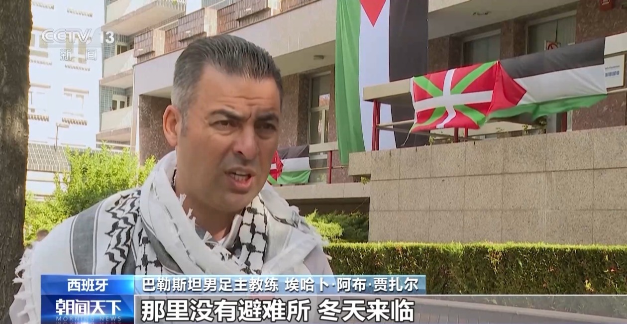 巴勒斯坦男足主教練 埃哈卜·阿布·賈扎爾:如今在加沙地帶還有着死亡和饑荒。那裏沒有避難所,冬天來臨,帳篷不能夠幫人們抵禦無論酷暑還是嚴冬,所以我們向全世界呼籲,向以色列佔領軍施加壓力,因爲巴勒斯坦人民值得擁有自己的國家和有尊嚴的生活。