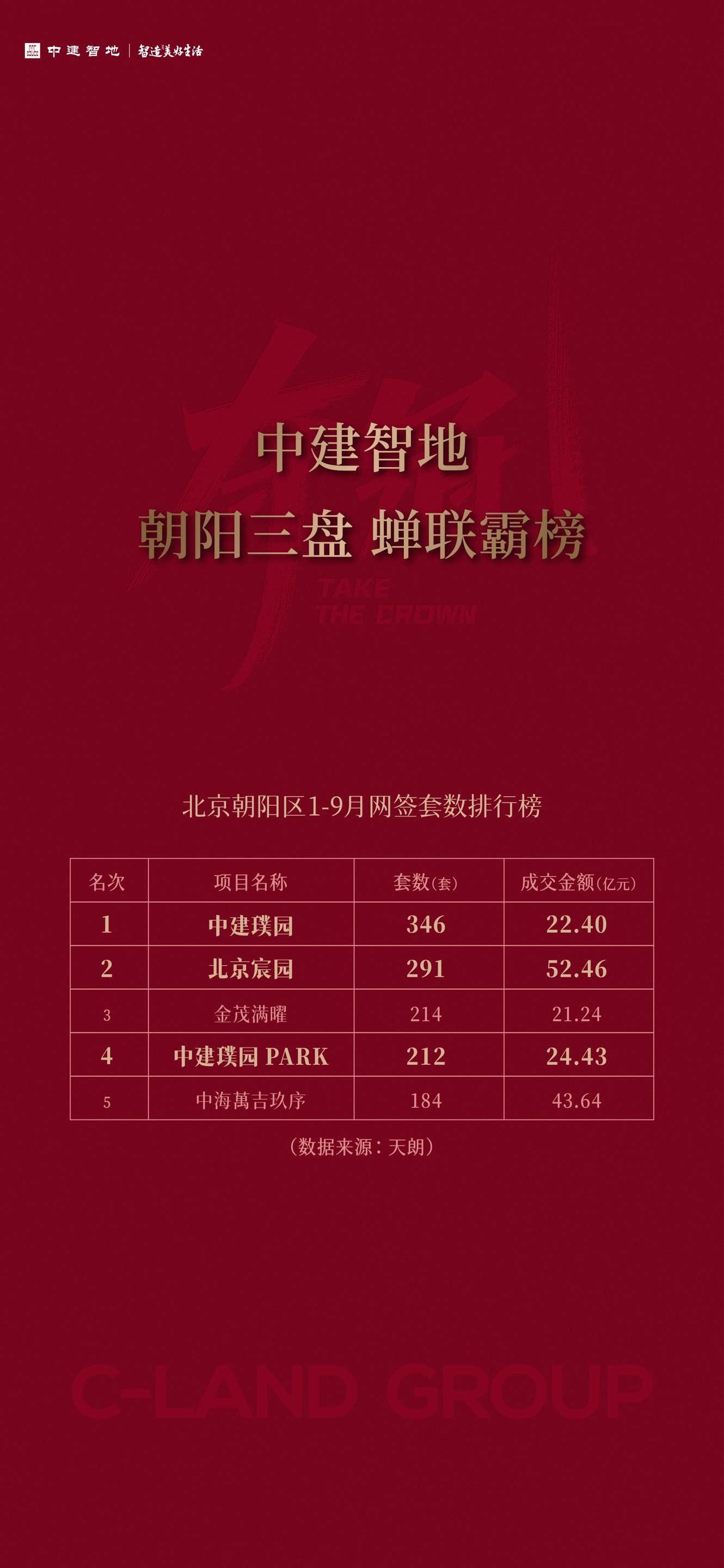 中建智地深耕朝陽,佈局中建宸園、中建璞園、北京宸園、璞園PARK、紫京宸園5部人居作品,並於9月30日摘取備受矚目的太陽宮地塊,持續精耕,再掀熱潮,夯實其市場地位與影響力。