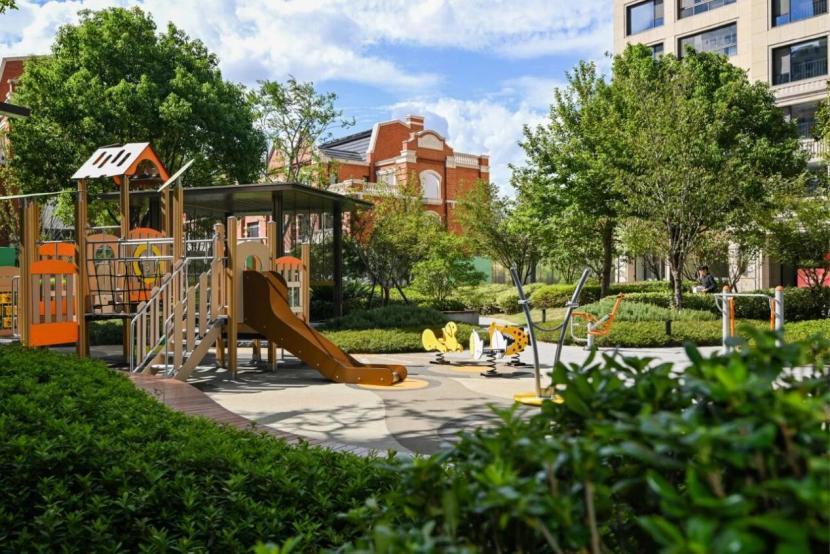 首先,是景觀的重塑。古北99的改造不是簡單的綠化升級,而是遵循合生對社區社交功能的重視,通過植入全天候活動廊架和高品質兒童樂園,將園林改造爲具備真實社交功能的“第二客廳”。