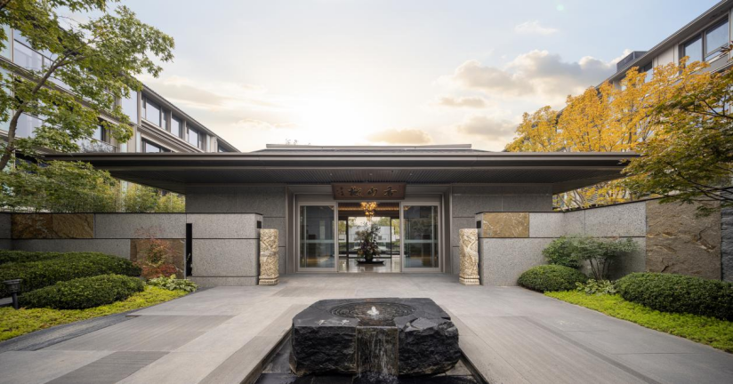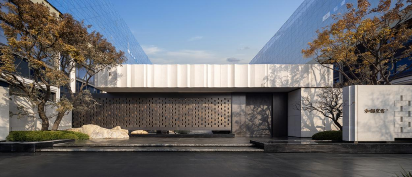 香山樾以準現實境兌現,既展示了其硬核產品力,又詮釋了“新質感”的燈塔水準。項目創造性引山入園,運用天青色仿汝窯陶板、皇家白玉等頂級材質,社區大門恢弘大氣,並對三株逾三百年古樹實施原地保護,建築爲古樹讓路,體現了對土地文脈的尊重與文化傳承。