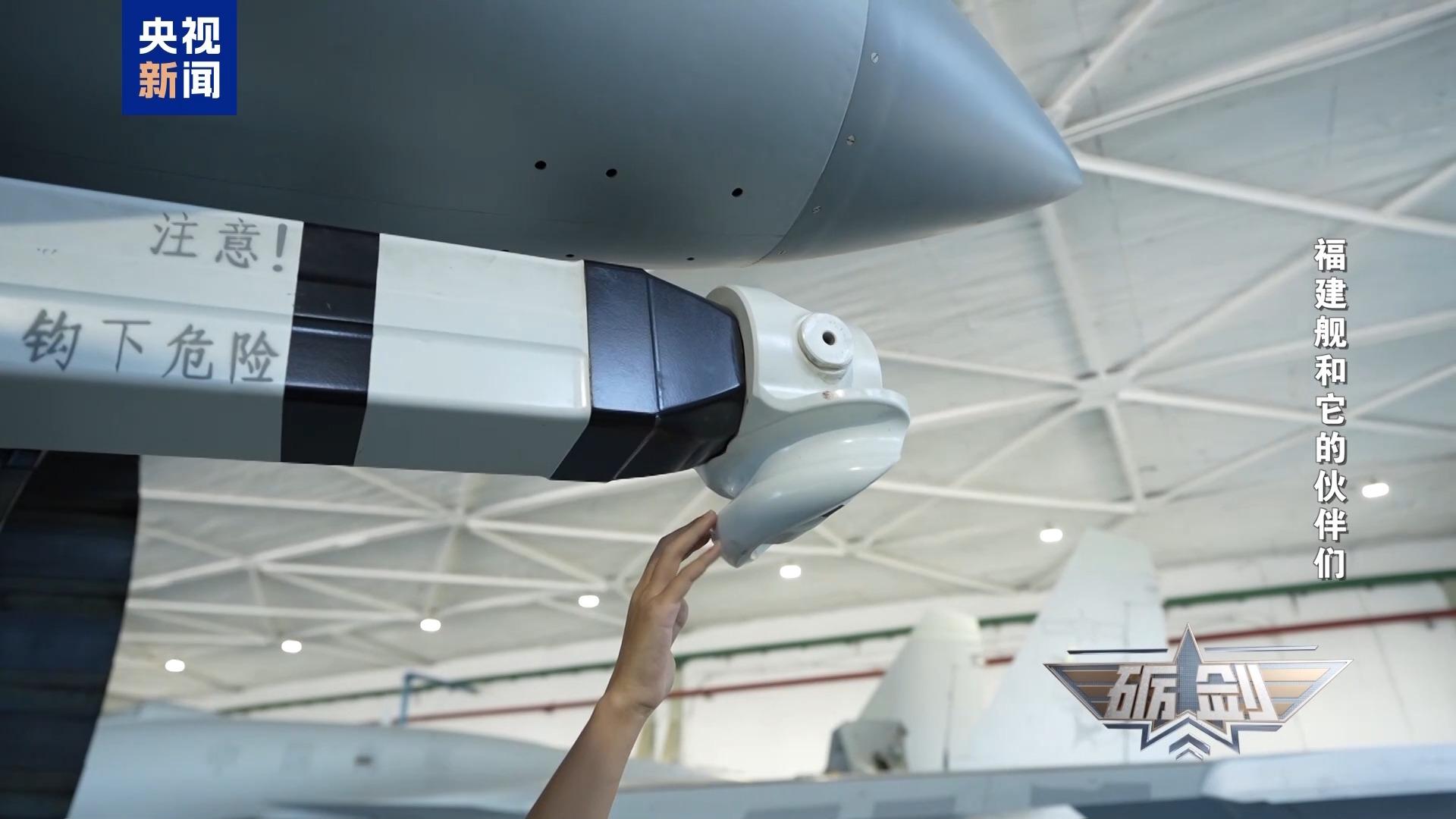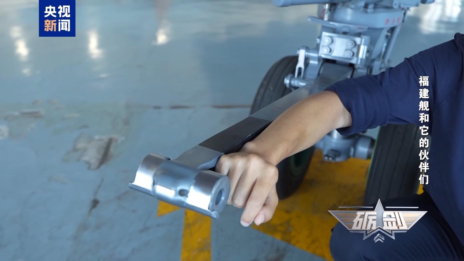 在沈飛的機庫,記者看到兩架殲15-T飛機一前一後停放着,殲-15T的“T”是漢語拼音“tán”的首字母。彈射杆是殲-15T飛機爲彈射起飛專門量身製造的。它能直接鉤住航母甲板上的電磁彈射器,瞬間就能把幾十噸重的殲-15T從靜止的狀態加速到幾百公里每小時,拽着戰機衝離甲板。