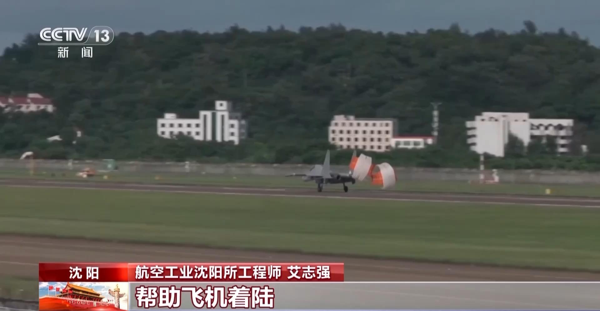 航空工業瀋陽所工程師 艾志強:這個是減速傘,在前端還有一些比如說干擾彈、曳光彈這些武器裝備。飛機着陸時候,在飛機後邊,就拋出一個像降落傘一樣的東西來幫助飛機,快速降低速度,幫助飛機着陸。