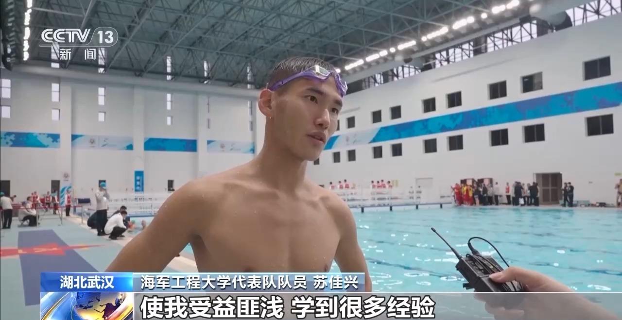 海軍工程大學代表隊隊員 蘇佳興:機會總是留給有準備的人,我在今天的比賽超常發揮,每一項都突破了自己的極限。作爲一名海軍院校學員,參加這種國際級別的比賽,跟這些高水平運動員同臺競技,使我受益匪淺,學到很多經驗,開闊了我的眼界,同時也爲我日後的訓練提供了寶貴的經驗。