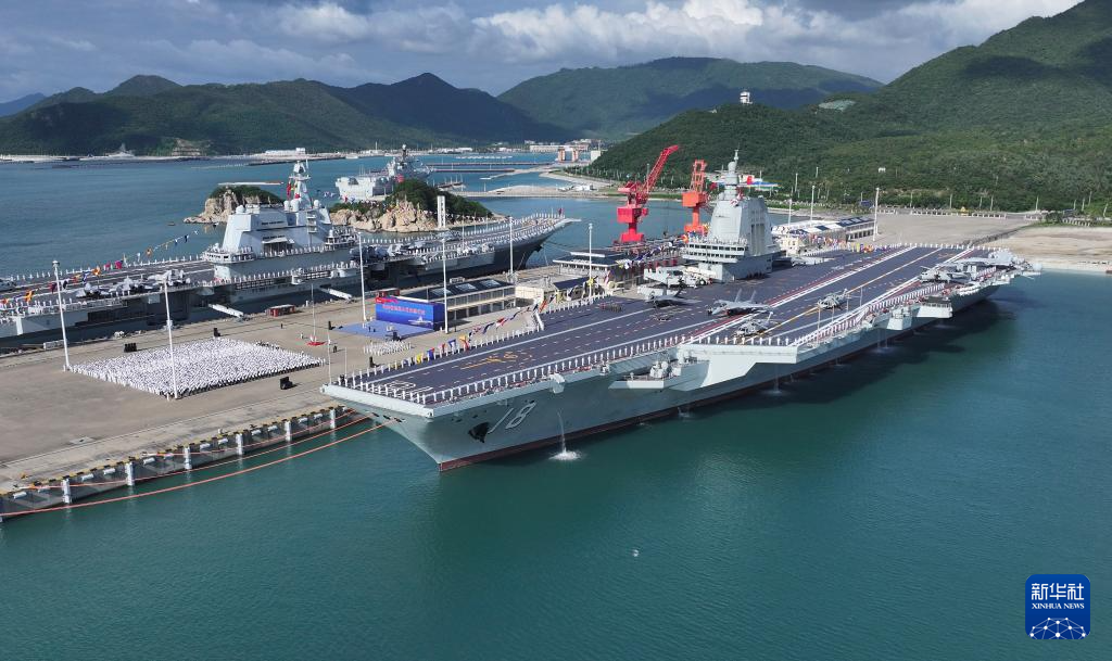 【環球時報報道 記者 郭媛丹 劉煊尊 王逸】我國第一艘電磁彈射型航空母艦福建艦入列授旗儀式11月5日在海南三亞某軍港舉行。中共中央總書記、國家主席、中央軍委主席習近平出席入列授旗儀式並登艦視察。福建艦是我國第一艘電磁彈射型航空母艦,也是我國第三艘航空母艦,舷號爲“18”,2022年6月下水命名。福建艦由我國完全自主設計建造,其電磁彈射技術處於世界先進水平。據報道,習近平親自決策福建艦採用電磁彈射技術。接受《環球時報》記者採訪的軍事專家表示,福建艦正式入列,是中國海軍從近海防禦型向遠海防衛型轉型建設成果的一個標誌和集中體現。這標誌着中國正式進入三航母時代,也標誌着中國海軍開啓電磁彈射航母時代。