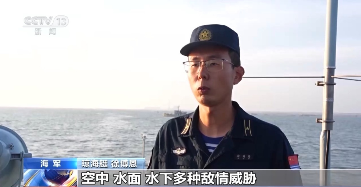 瓊海艇 徐博恩:此次訓練,我們精心構設了空中、水面、水下多種敵情威脅,全面檢驗了指揮員特情處置能力,通過高強度、快節奏攻防轉換,官兵練指揮、練協同、練技能、練戰法,全面錘鍊了編隊反水雷作戰能力。