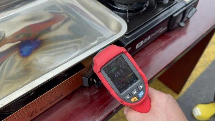 實驗步驟:將兩個卡式爐並排放置,同時點火使用。測溫槍顯示,其中一個卡式爐氣罐倉表面溫度初始爲28.8℃,約10分鐘後升至80℃。隨後,在一個卡式爐上放置超大鐵盤,約5分鐘後,氣罐倉內的壓力回彈保護裝置啓動,將氣罐彈出,卡式爐停止工作。