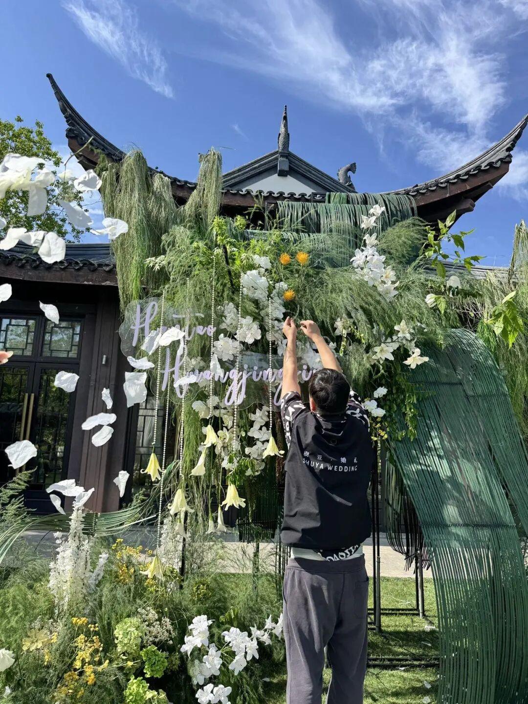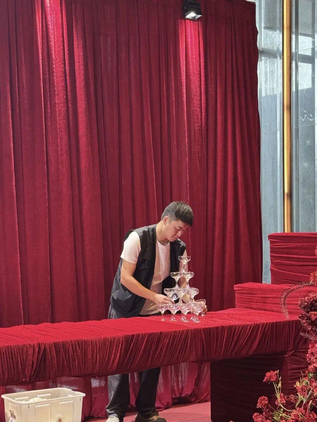 與柏男一樣,在嘉興另一家酒店的宴會廳內,婚慶執行阿豪目送最後一批賓客散去,緊繃的神經終得片刻鬆弛。這場“戰役”的序幕早在一天前就已拉開,前夜凌晨物資裝運;當日清晨六點準時抵達現場;緊接着是連續不間斷的協調、搭建與流程把控。