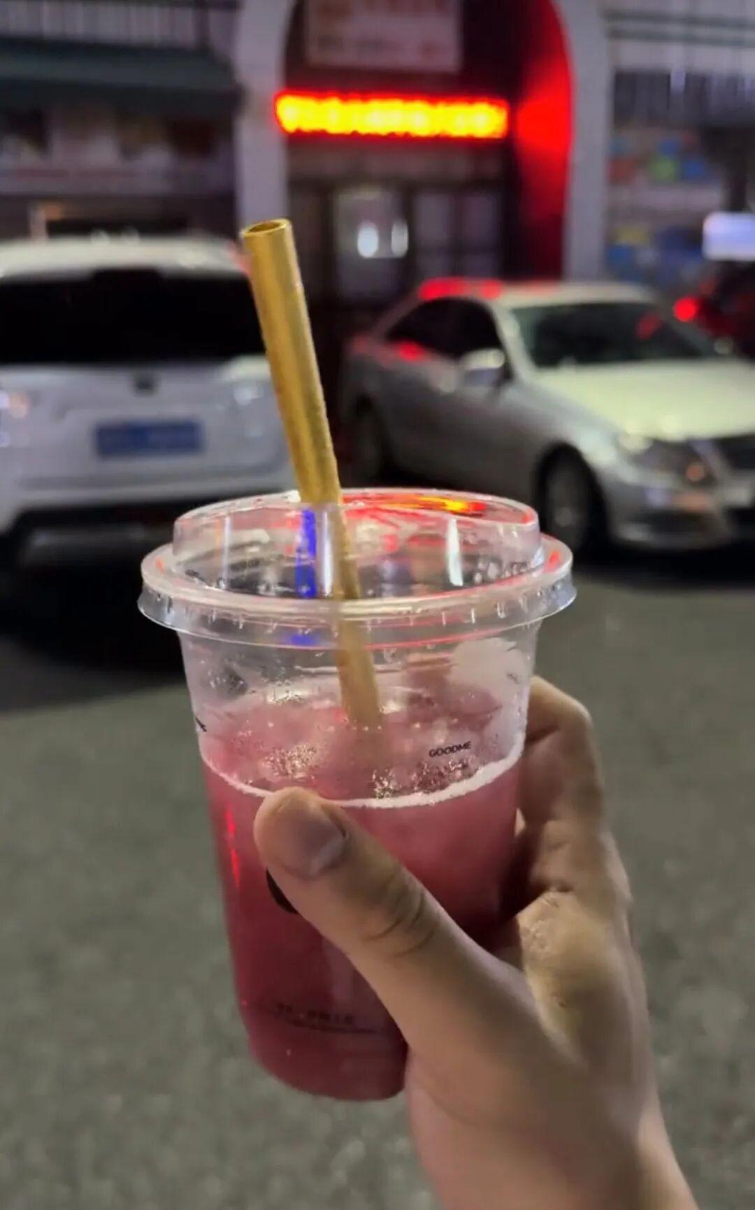 事情發生在十多天前。那天晚上,他跟朋友喫完宵夜,騎着小電驢回家。黃金吸管就放在電動車前面的車兜裏。