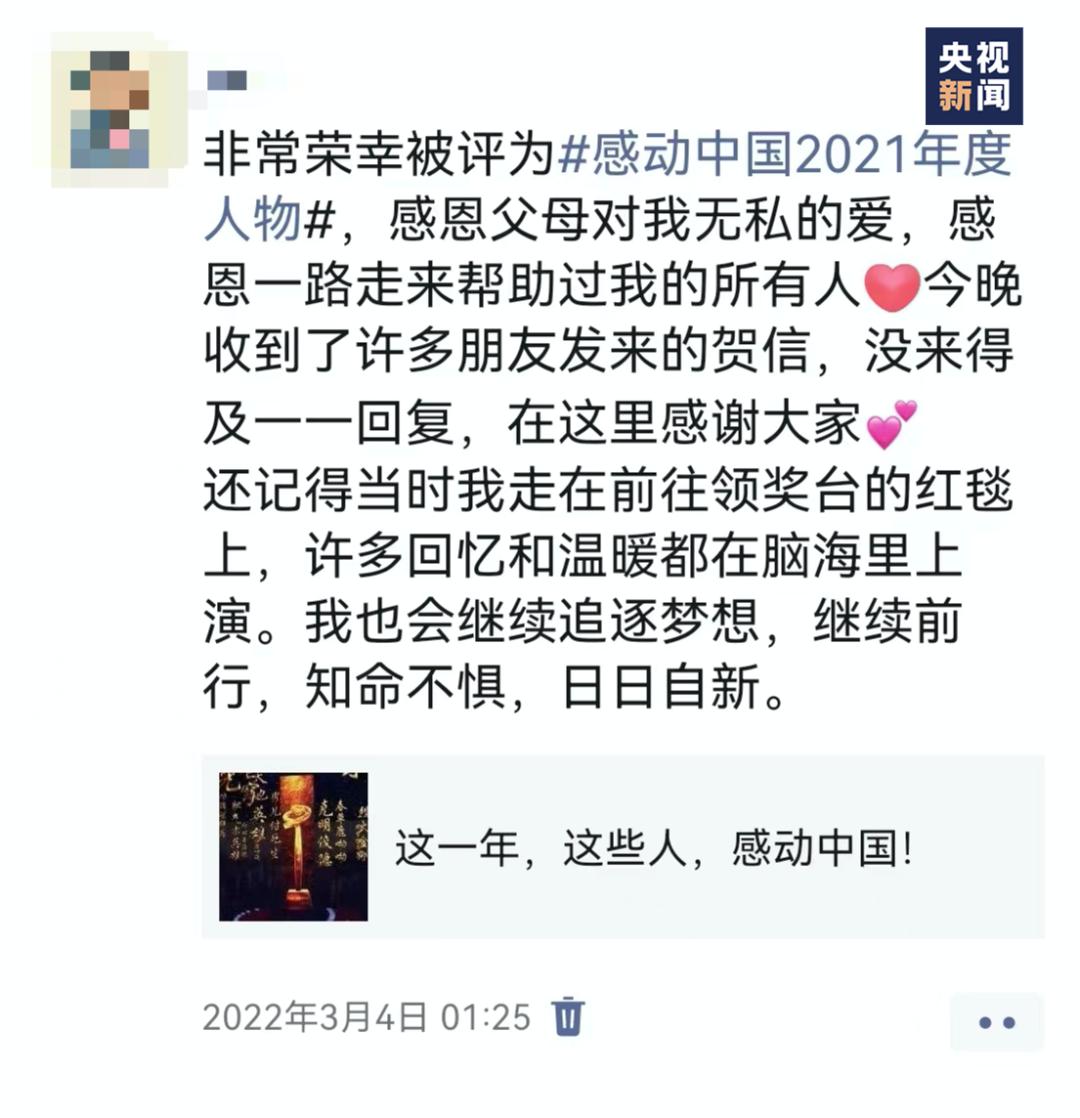 讀博期間,江夢南被評爲“感動中國2021年度人物”。