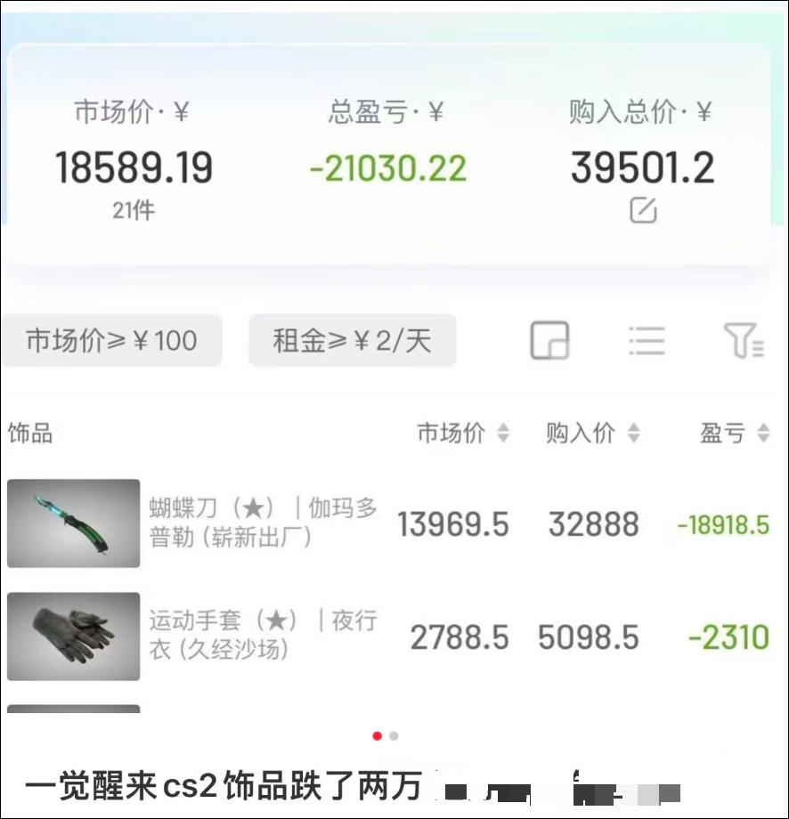 成本降低,數量變多,這也直接導致很多玩家的遊戲飾品庫存價值“腰斬”,整個飾品交易市場接近崩盤。