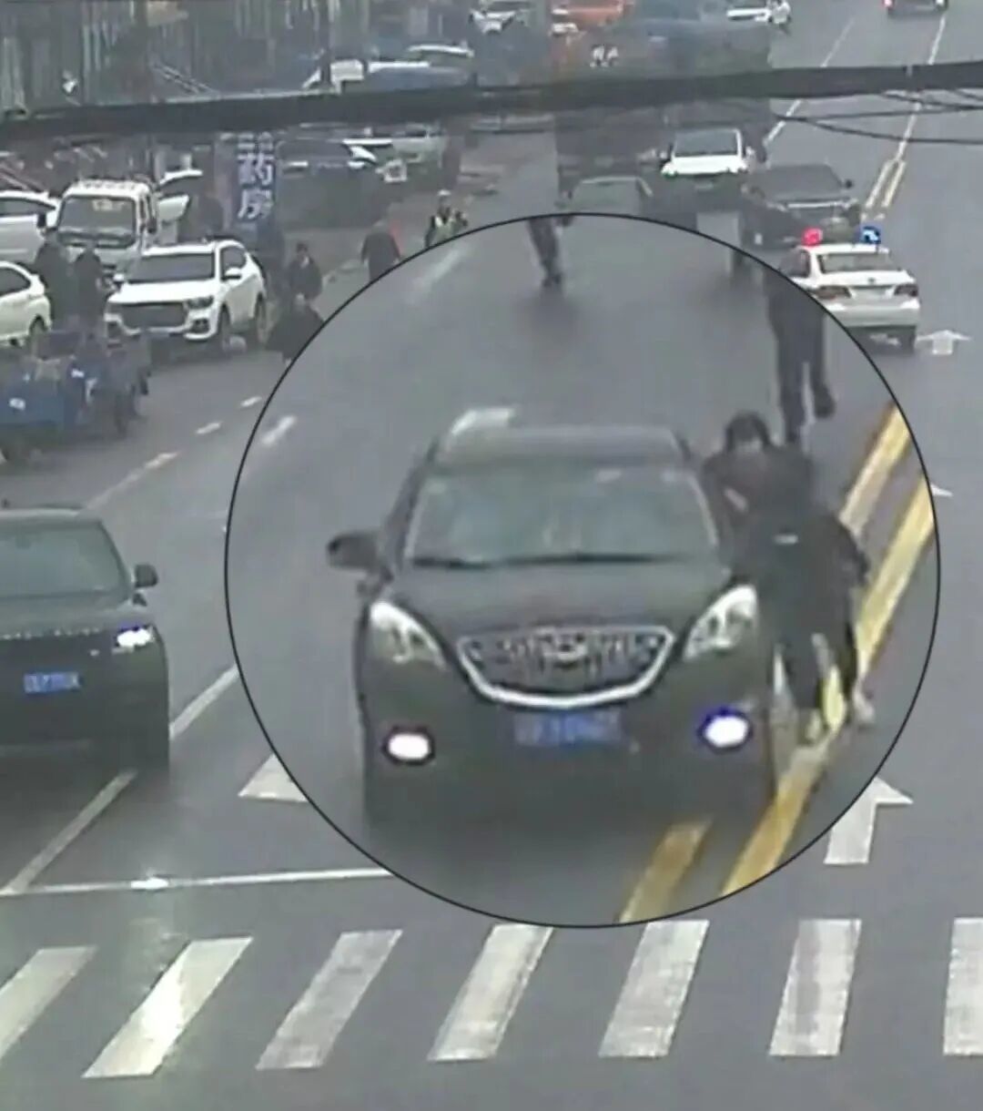 上午10時許,當董某福車輛緩速經過閆店鄉時,偵查員李晨果斷上前實施抓捕。不料犯罪嫌疑人激烈反抗,突然啓動車輛猛踩油門逃竄。李晨臨危不懼,死死控制犯罪嫌疑人,整個人被加速車輛拖行百餘米!