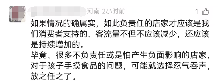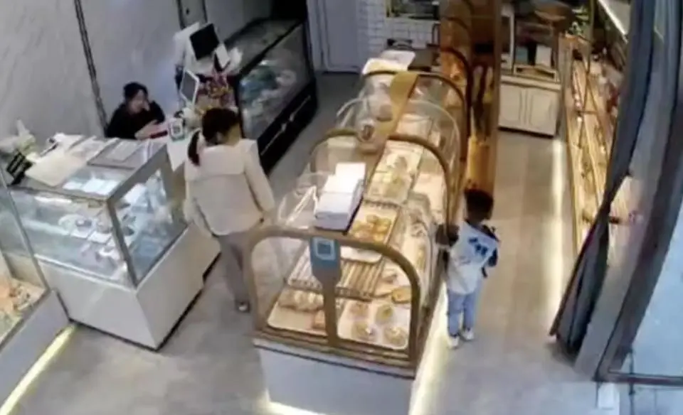 記者在視頻中看到,10月20日13時45分許,一女子帶着孩子進入蛋糕店,孩子將手伸入櫥窗試圖觸摸未經包裝的蛋糕,店家出言提醒:“手不能拿,你要我給你裝,手不能碰的哈。”之後該女子對孩子怒斥:“要什麼啊?煩死了,以後不來了。”該女子離開蛋糕店後約5分鐘,連發多條帖文稱孩子喫壞了肚子,讓網友“避雷”。