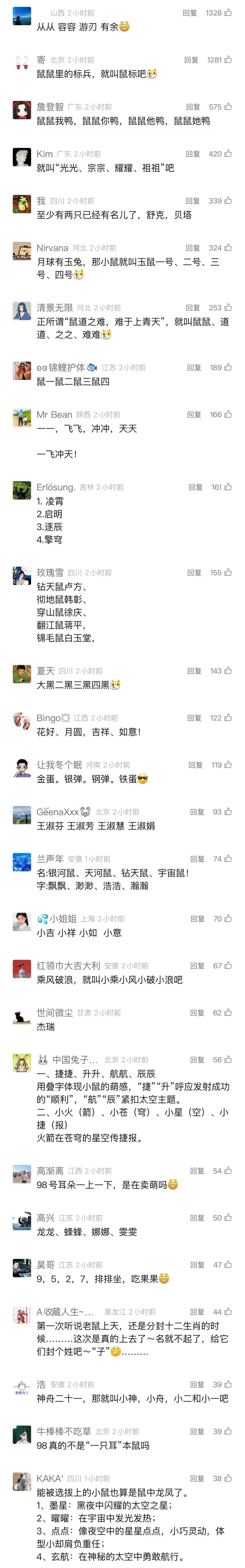 你想給4只“太空小鼠” 起什麼名字?