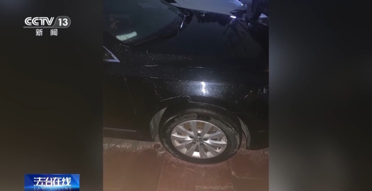 當事人 周女士:我停在了最靠邊的位置,因爲我們是一號樓,開發商在二號樓設置了一個圍擋,車距離那個是最近的。有下雨,也有颳大風,然後就把那個圍擋連帶金屬支架一起,就吹到了我們家車上了,交警也作出了認定書,說我們沒有責任。