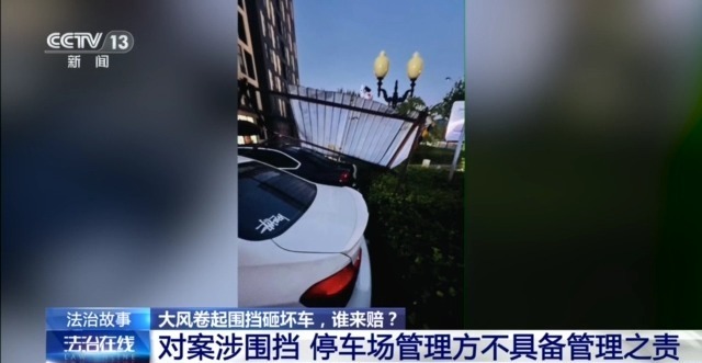 北京市房山區人民法院法官助理 王輝:7級大風把這個圍擋捲起來了,圍擋四分五裂,一部分就砸到了本案周女士的自家車輛上,還有一部分圍擋砸到了停車場的其他車輛上。原告的訴求主要是兩點,一個就是要求開發商賠償車輛的維修費用,第二個因爲車輛無法正常使用,在這期間產生了一定的交通費,要求開發商一併賠付。
