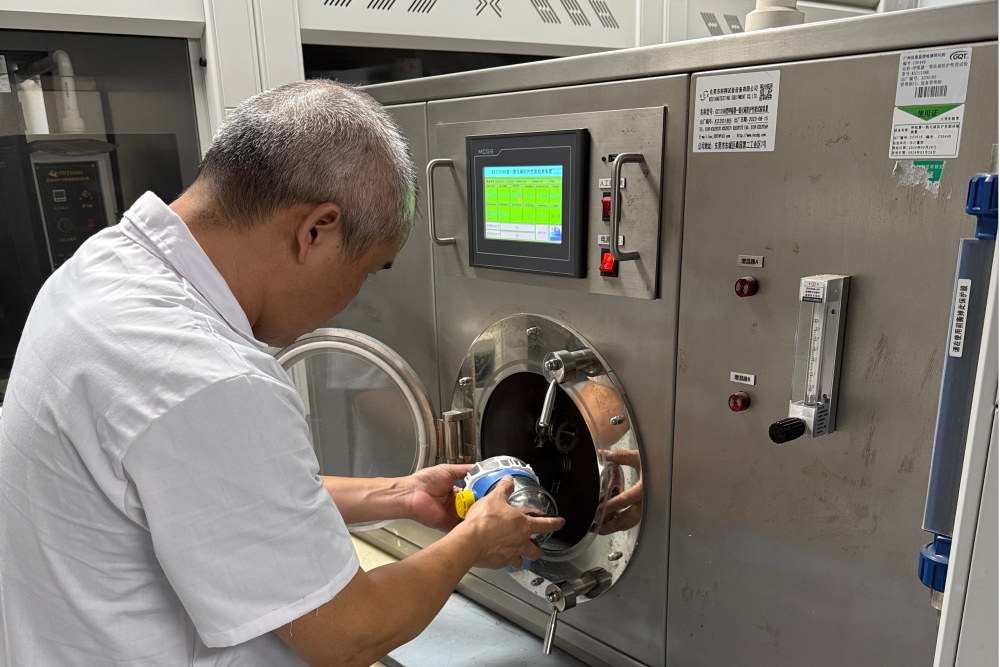 圖爲工作人員在進行過濾式消防自救呼吸器一氧化碳防護性能試驗。(廣州質量檢驗研究院供圖)