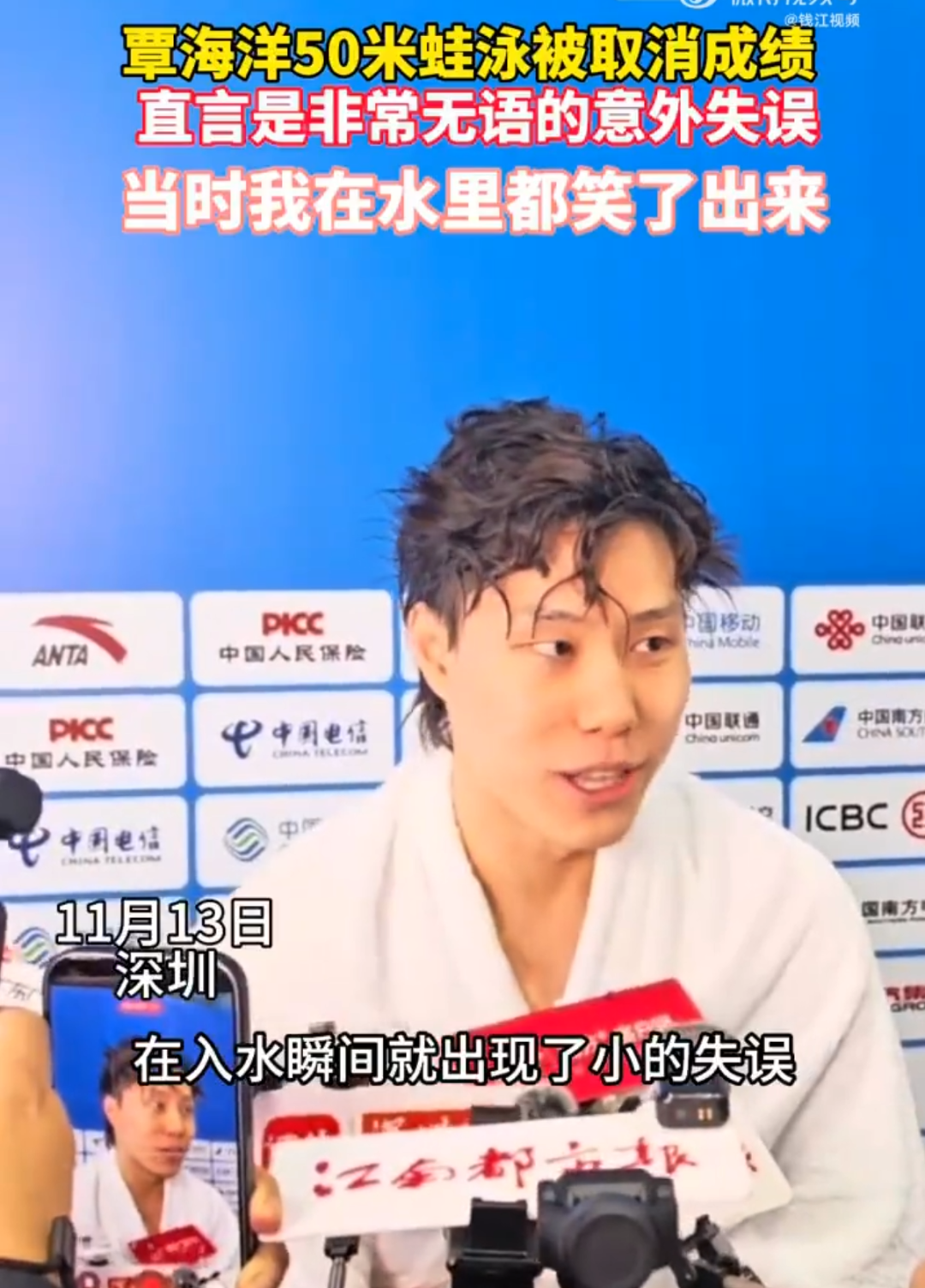 賽後,覃海洋表示,正常情況拿下這枚金牌沒問題,但從跳臺入水的時候出現了一點小意外,由於專注思考水中節奏動作,“出發入水的時候手沒有併攏,就停那兒了。在那一瞬間,我覺得游完之後有可能出現犯規的情況。不過我當時也沒想那麼多,及時去調整了一下,最後到邊成績能有前三已經蠻喫驚的了。”