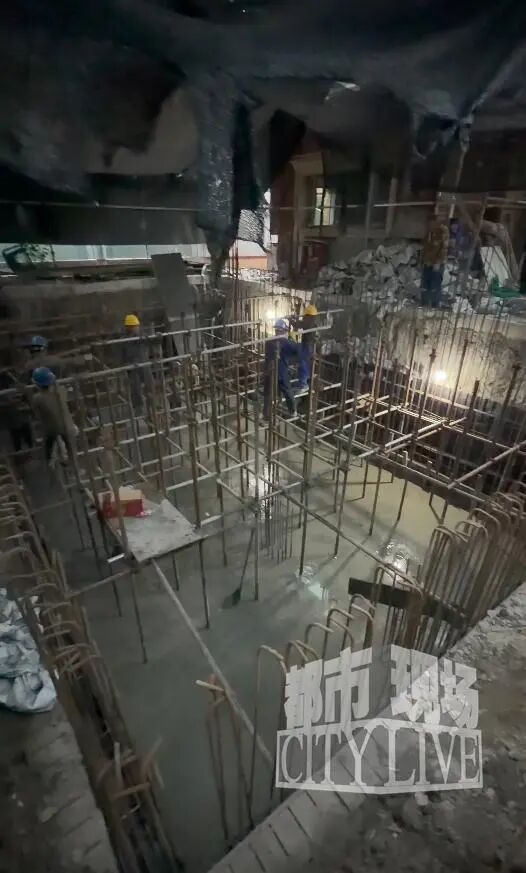 “他們有30多個人在現場,又是挖水泥,又是綁鋼筋……開挖了一個基坑6米深,300平的地下室,當時我們就很震驚了!”
