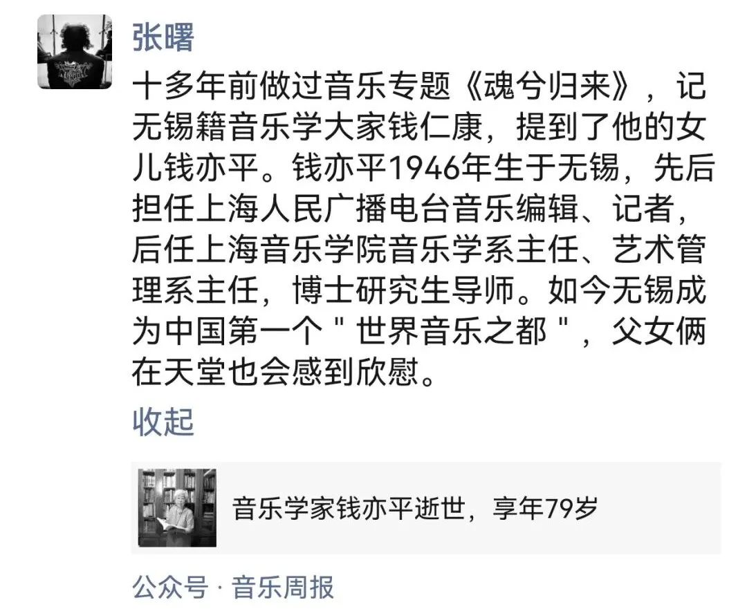 錢亦平還熱心公益,視推廣社會音樂美育教育爲己任,上世紀90年代受邀爲上海老幹部大學的離退休幹部上音樂欣賞課,將近十年,不計報酬。退休後,她又自告奮勇在社區辦起老年鋼琴班,義務教授社區的老年人彈奏鋼琴,使得他們老有所學、老有所爲。