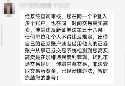 和許多詐騙案件相似,當李先生準備提現時,“客服”突然告知李先生其賬戶因“同一IP登錄多個賬戶”“高買高賣”等操作,已涉嫌違法,賬戶被凍結。