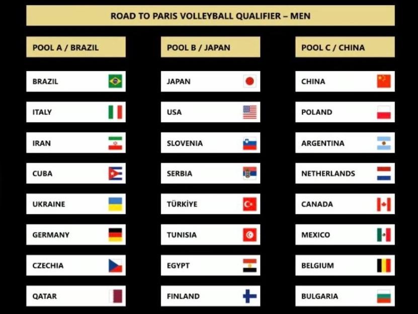 男排資格賽分組。圖片來自國際排聯